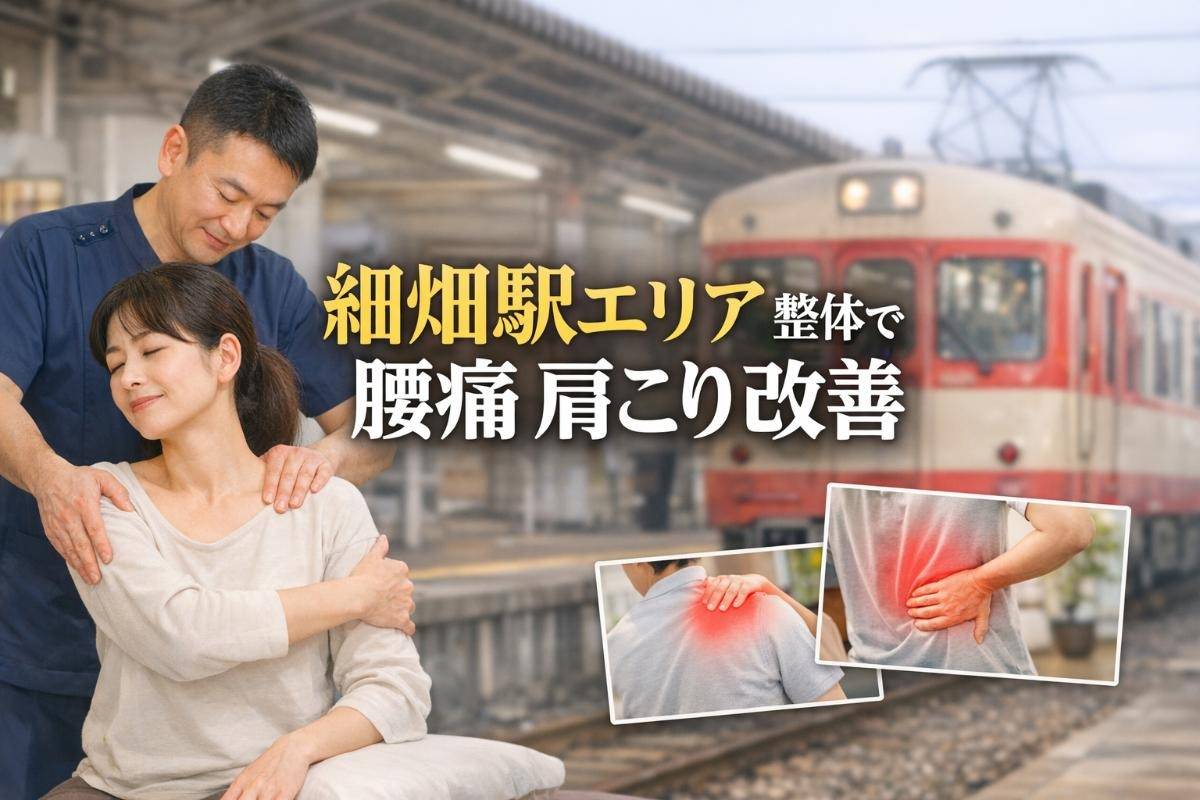 細畑駅エリアで整体を受けて腰痛や肩こり改善へ